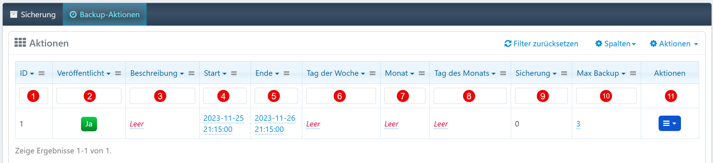 | ID | Eindeutige Identifikationsnummer der Backup-Aktion. |